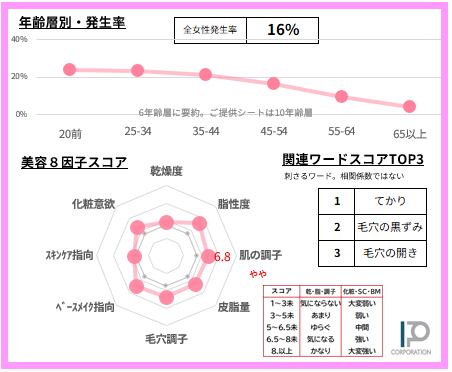 女性の16%【サンプルデータ数870人】で発生している「てかり」悩みを65項目で徹底的に分析。2ページに凝縮しました(SAMPLE例は画像4-5)