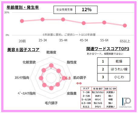 女性の12%【サンプルデータ数620人】で発生している「ドライな混合肌」感覚を68項目で徹底的に分析。2ページに凝縮しました(SAMPLE例は画像4-5)