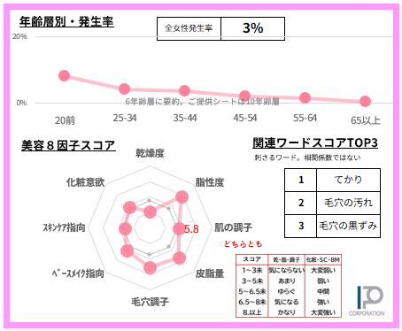 女性の3%【サンプルデータ数160人】で発生している「オイリー肌」感覚を68項目で徹底的に分析。2ページに凝縮しました(SAMPLE例は画像4-5)