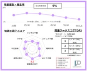 ・体調8因子スコアは各10ポイント化で見える化。チャートの外側に大きいほど調子の悪化(QOLの低下)を示します