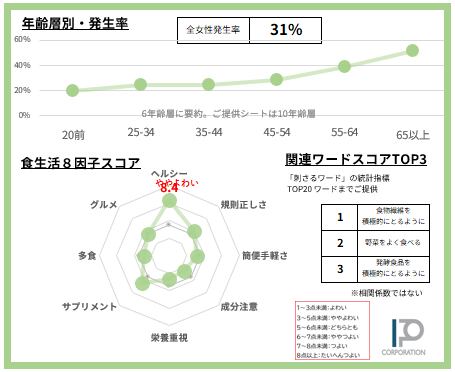 女性の31%【サンプルデータ数1,560人】で発生している「食物繊維を積極的にとるようにしている」食スタイルを63項目で徹底的に分析。2ページに凝縮しました(SAMPLE例は画像4-5)