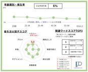 ・食生活8因子スコアは各10ポイント化で見える化。チャートの外側に大きいほど指向の強さを示します