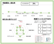 ・食生活8因子スコアは各10ポイント化で見える化。チャートの外側に大きいほど指向の強さを示します