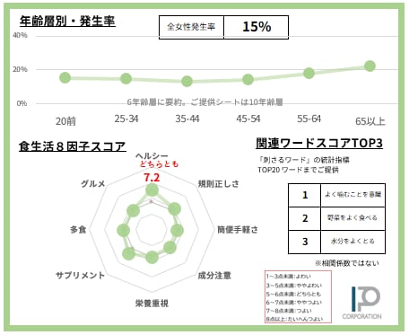 美容・健康・食生活・ライフスタイルの悩みや意識間の関連性(動線)を詳細に考察できます。